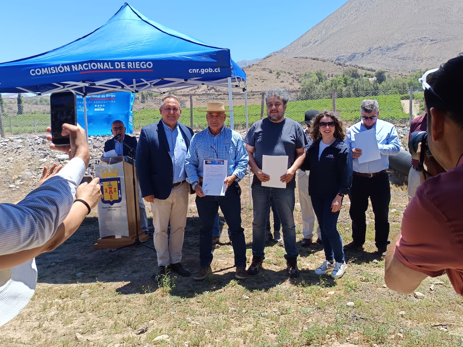 La actividad contó con la participación del Seremi de Agricultura, Christían Álvarez; la Directora Subrogante Nacional de la CNR, Marianela Matta; el Coordinador Regional de la CNR, Álvaro Espinoza; y el alcalde de Vicuña, Mario Aros.