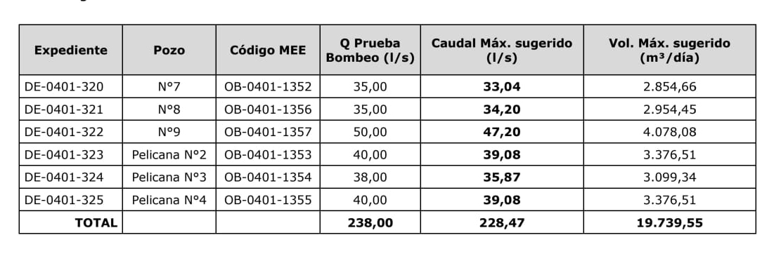 Los pasos siguientes incluyen en un plazo de 15 días entregar algunas observaciones que solicitó la DGA, tras el visto bueno para la operación de los pozos.